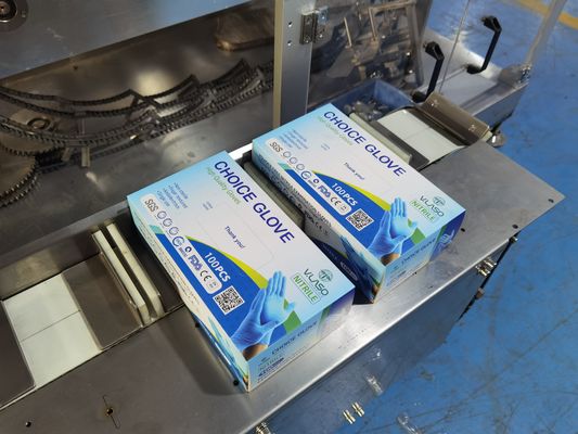 Mesin Cartoning Vertikal Multifungsi Otomatis 100 PCs Disposable Nitrile Gloves Box Packing Machine
